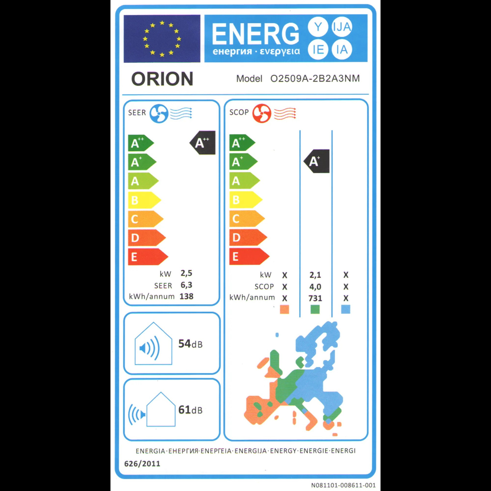 - Hűtési energiaosztály: A++ (SEER: 6,3).